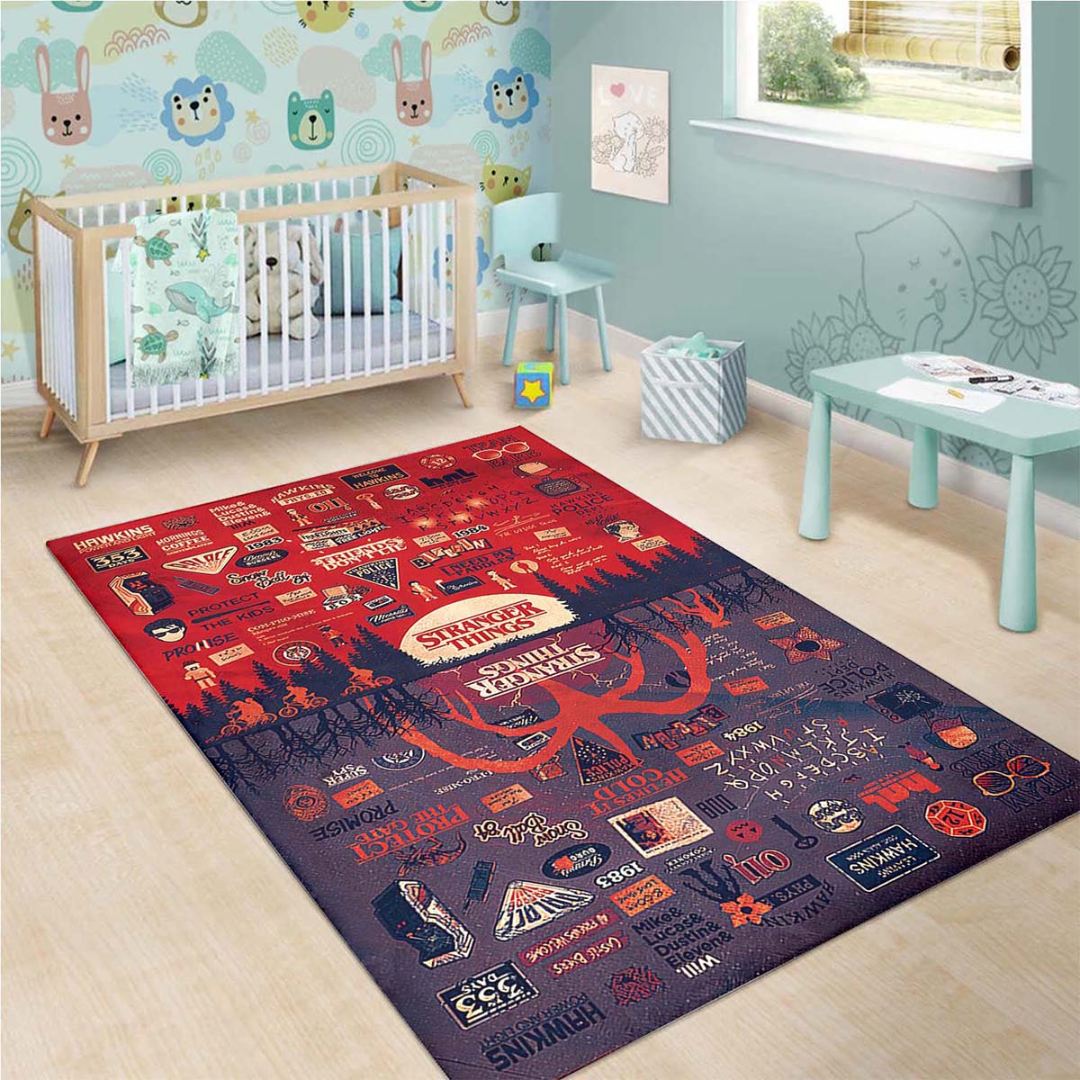 Stranger Things Wohnzimmer Dekor Teppich, Dekorativer Teppich, Teppich für Wohnzimmer ist nicht nur schön, sondern auch äußerst praktisch. Dank der rutschfesten Rückseite und der hohen Schmutzresistenz ist die Pflege und Reinigung Ihres Teppichs so einfach wie nie zuvor. Sie müssen den Teppich nur regelmäßig absaugen oder vorsichtig mit der Hand waschen, damit er wie neu aussieht.
