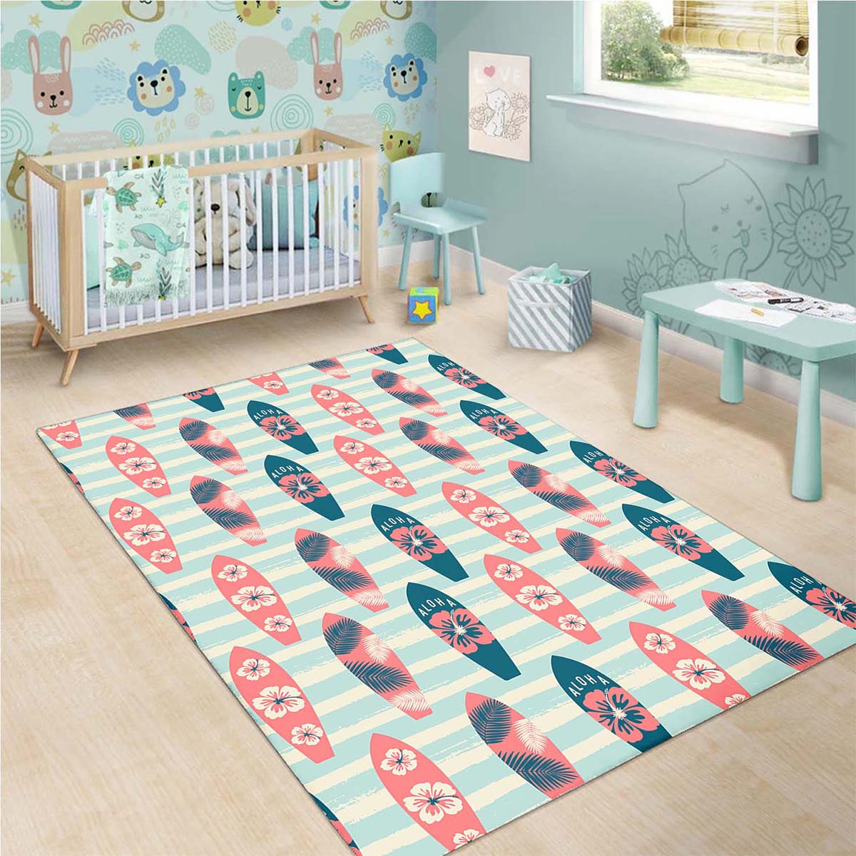 Genießen Sie das weiche, glatte Gefühl des Surf Aloha Rectangle Teppich, Sportteppich, Jungenzimmer Teppich – die perfekte Wahl für alle, die Wärme, Luxus und Stil lieben. Dieser Teppich eignet sich für das Wohnzimmer, das Schlafzimmer oder jede Ecke, die Sie in einen idealen Ort zum Entspannen verwandeln möchten.